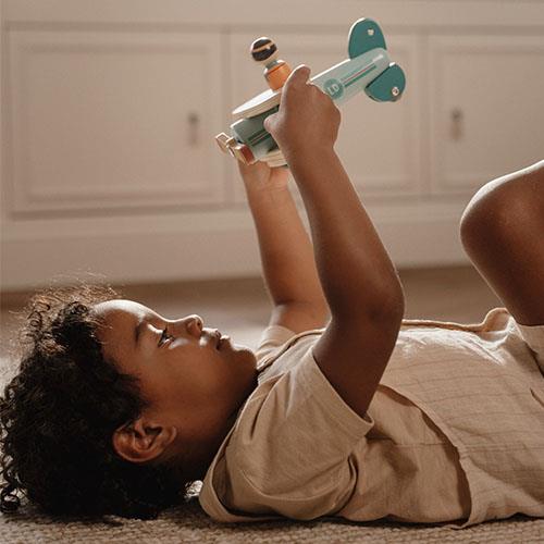 Pronto per la partenza! Sei il pilota in comando, quindi avvia il motore, dai una svolta all'elica e andiamo all'avventura. Questo aereo è progettato per un gioco interattivo e fantasioso. Le ruote che rotolano dolcemente consentono al tuo piccolo di scivolare senza sforzo sul pavimento per esplorare nuove aree. Lascia che l'immaginazione di tuo figlio salga a nuovi livelli con questo divertente aereo da gioco in legno.